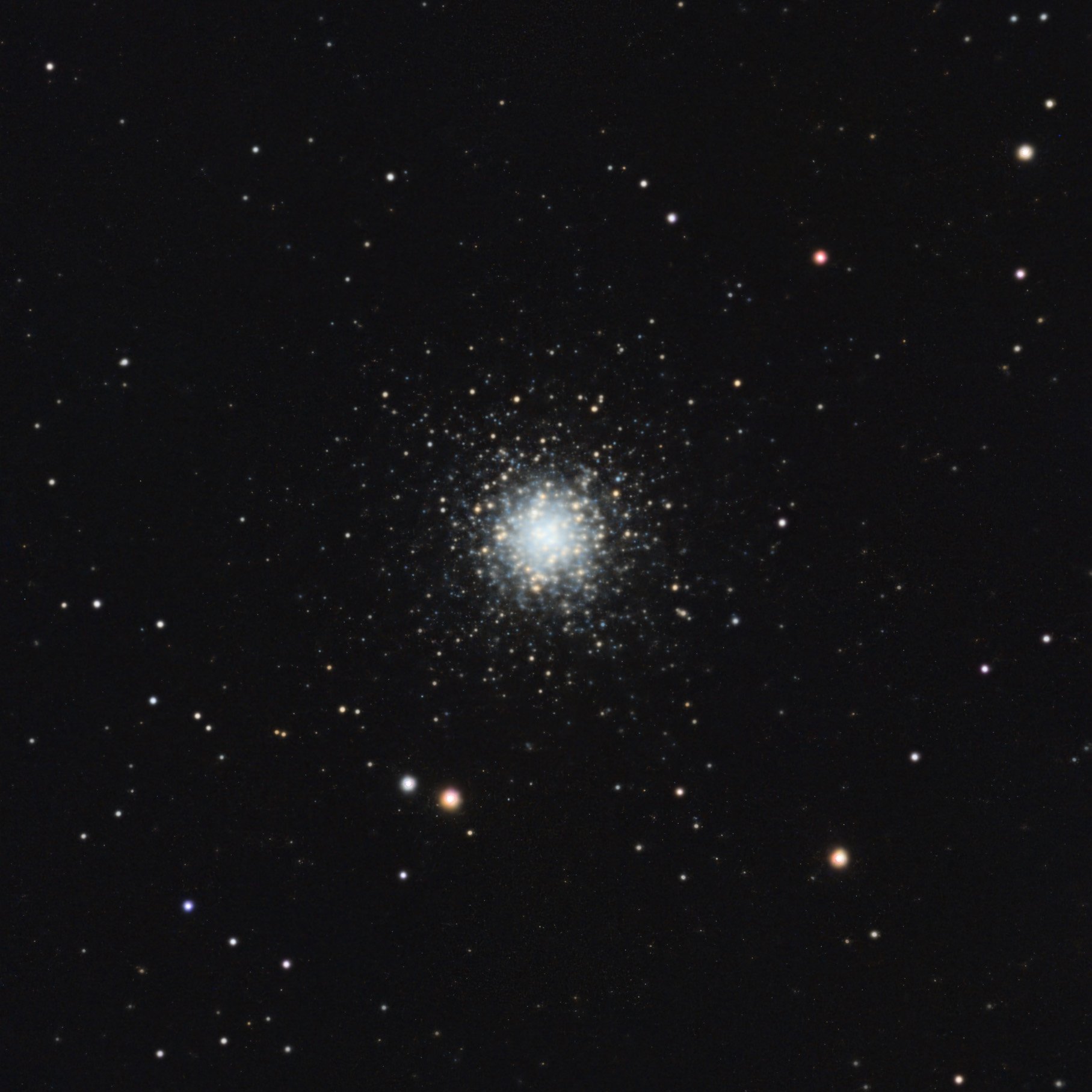 Half a million stars packed into a sphere, resolving right to the edges. Look at the colour — blue-white younger stars at the core, older orange ones scattered through the halo. One of the best globular clusters in the northern sky, and it holds up in almost any conditions. A month dominated by galaxies, and M3 still belongs near the top of the list.