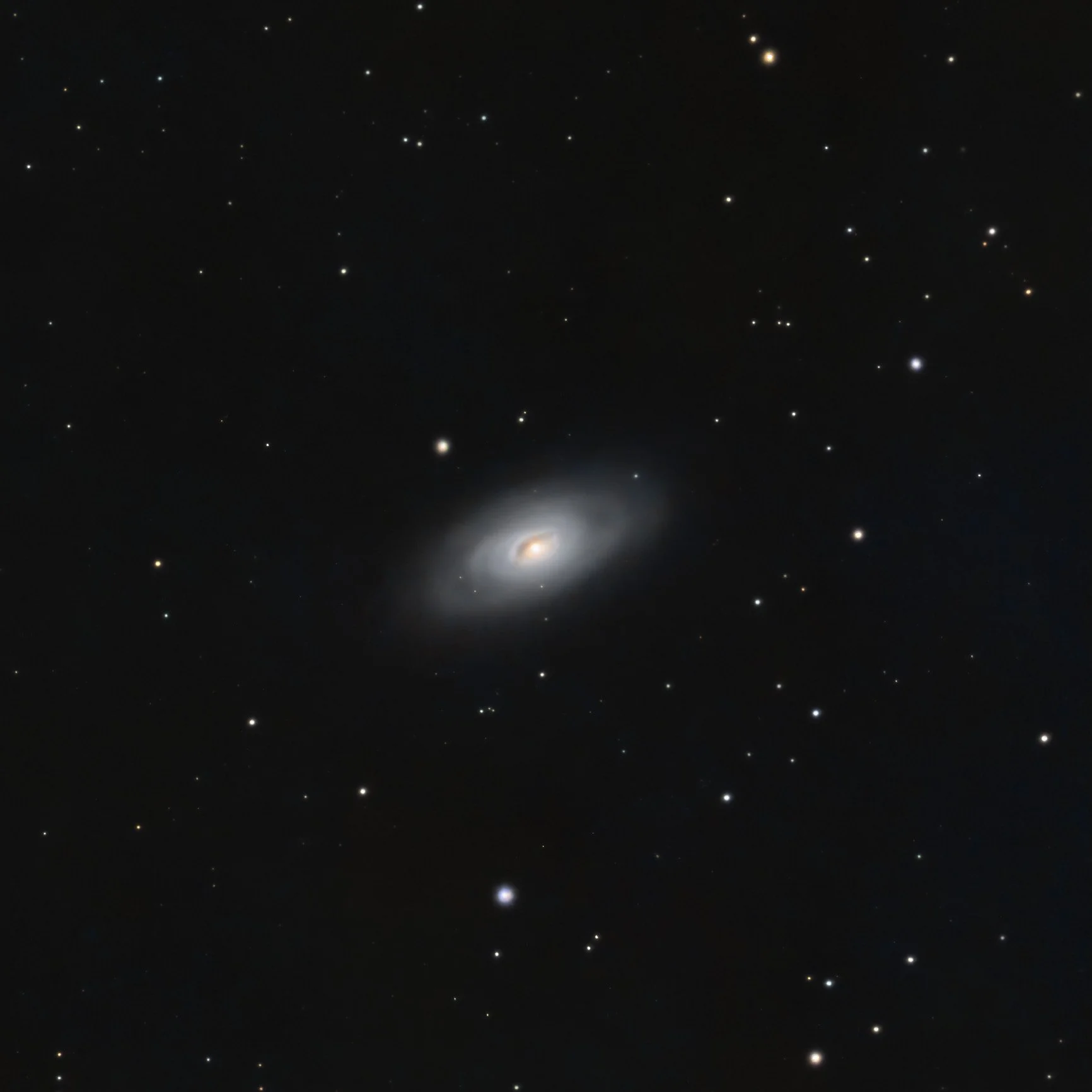 M60 itself appears quickly as a bright, smooth oval. The companion NGC4647 takes more integration to reveal. Under a dark sky the contrast between the two becomes the point of the image.