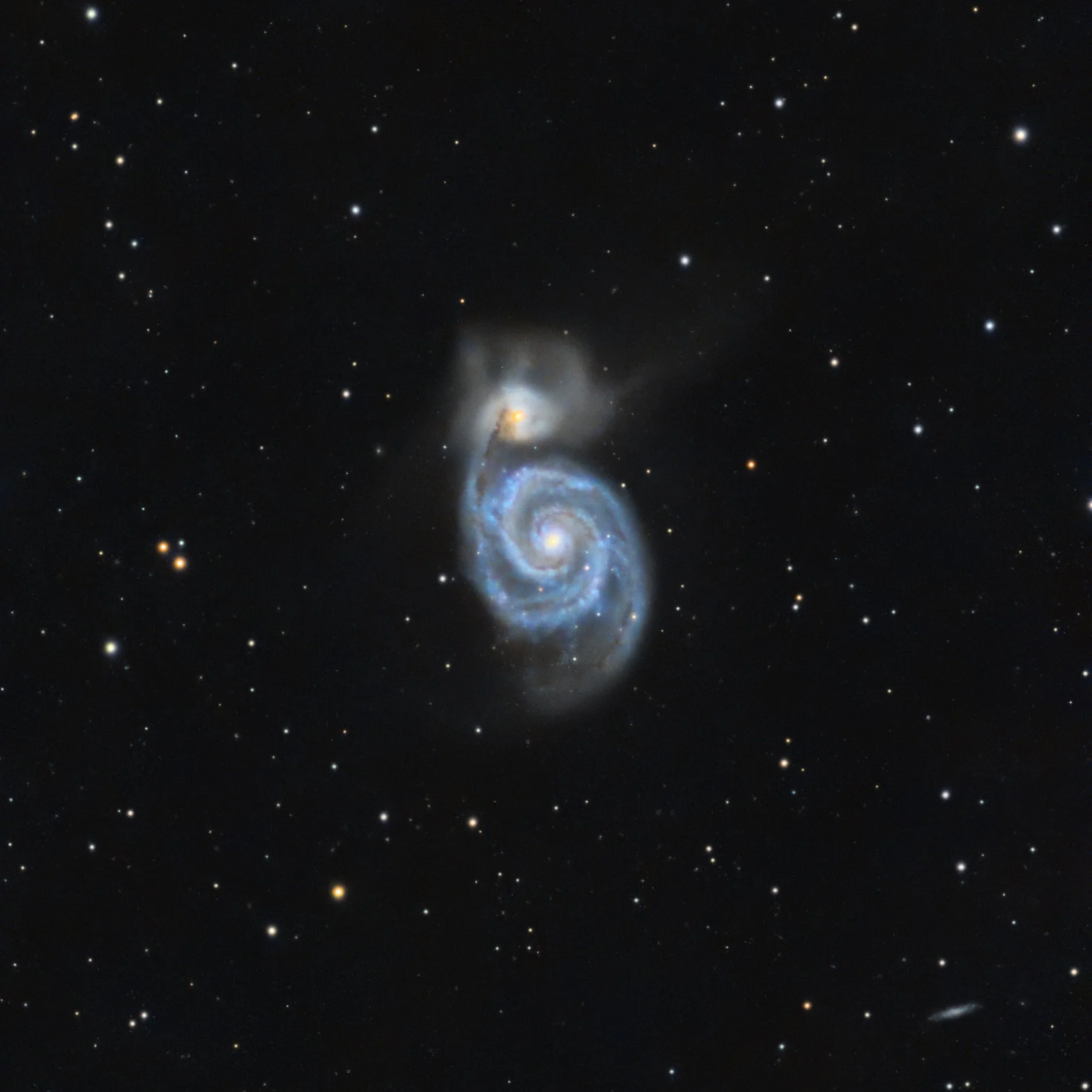 M51 – Whirlpool Galaxy, captured using a ZWO SeeStar S50 smart telescope by Cosmic Captures