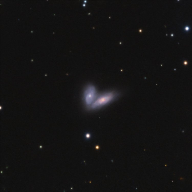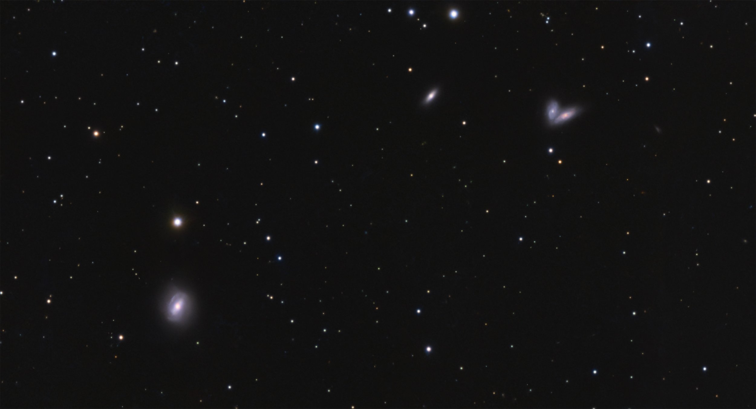 Two spiral galaxies in the earliest stages of collision — in about 500 million years they'll merge into a single elliptical. Shot alone they're small and subtle, but pair them with M58 in the same wide field and suddenly you're looking at the heart of the Virgo Cluster. One of those targets where context transforms the image.