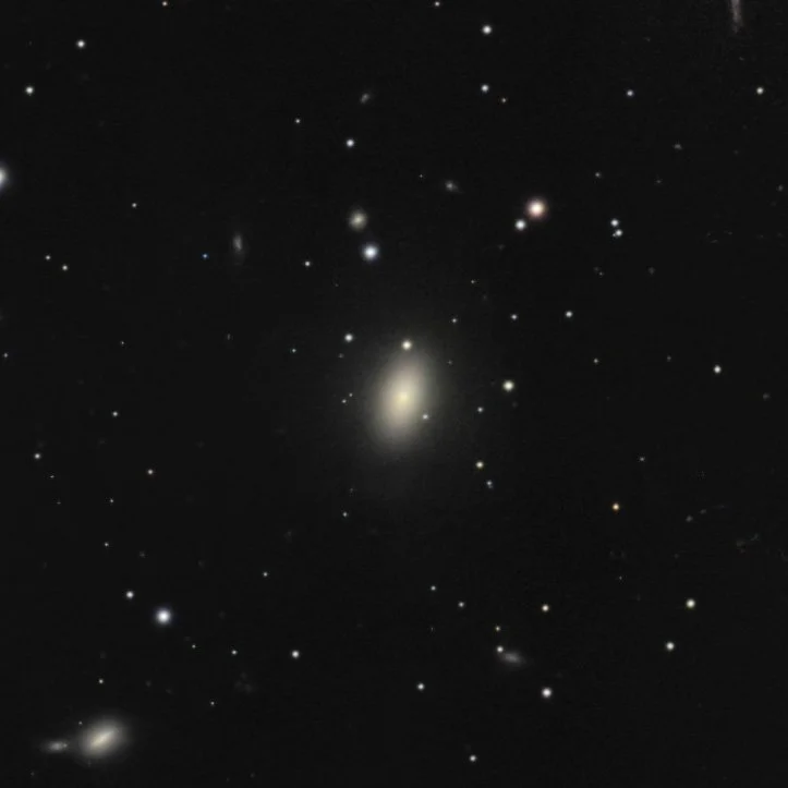 A compact elliptical in the heart of the Virgo Cluster. On its own, it's understated — a smooth, featureless glow with no spiral arms or dust lanes to grab the eye. Its real value is context: shoot wide, and it anchors the surrounding galaxy field. Worth imaging as part of the M59/M60 group rather than solo.