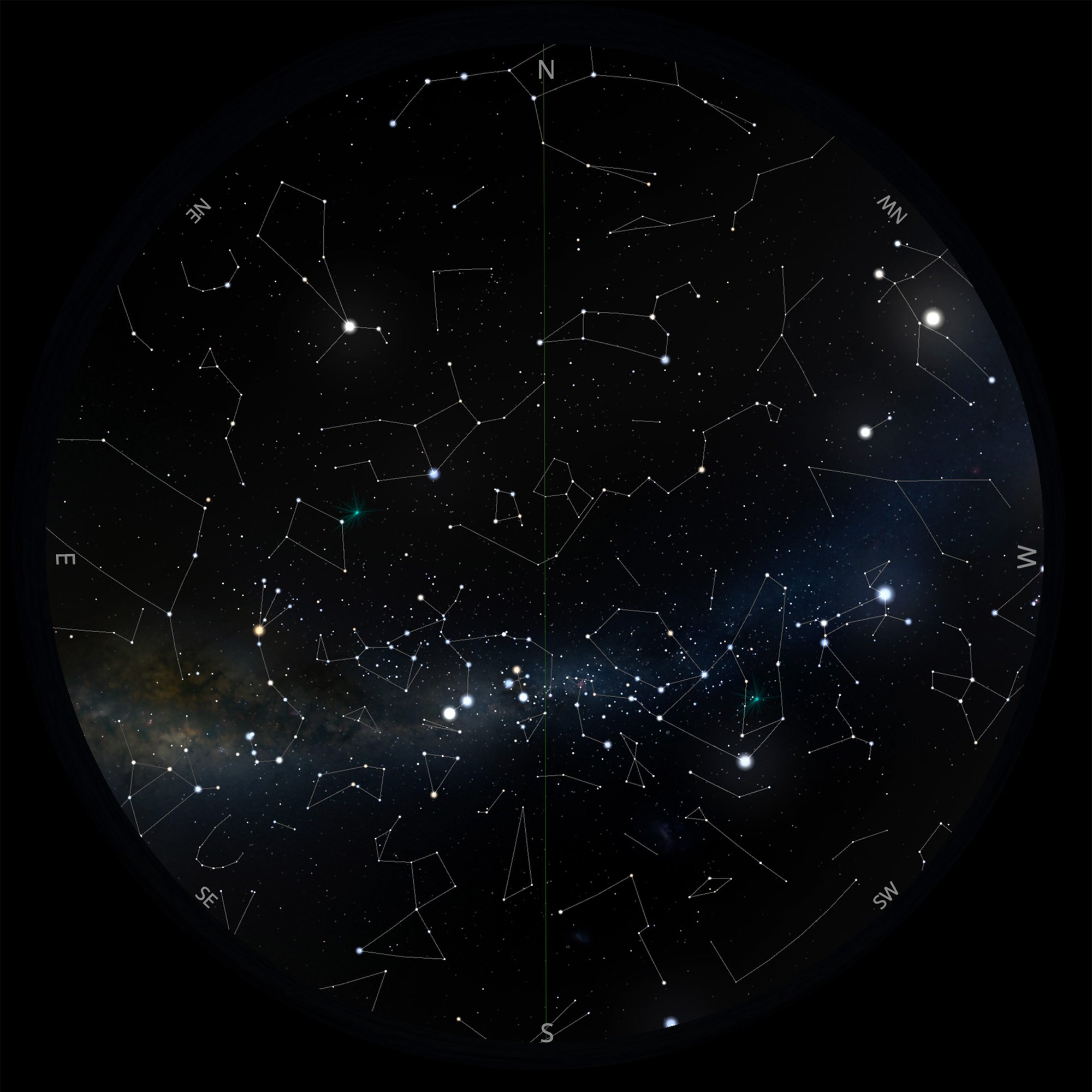 Southern Hemisphere Sky – Midnight at New Moon (at -30° latitude)