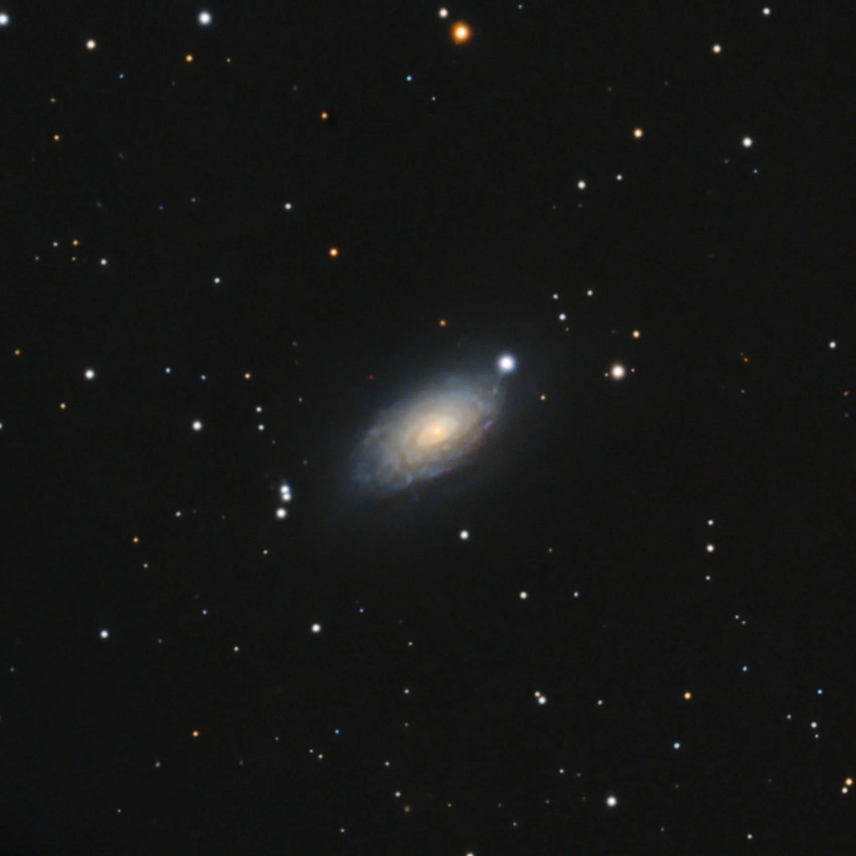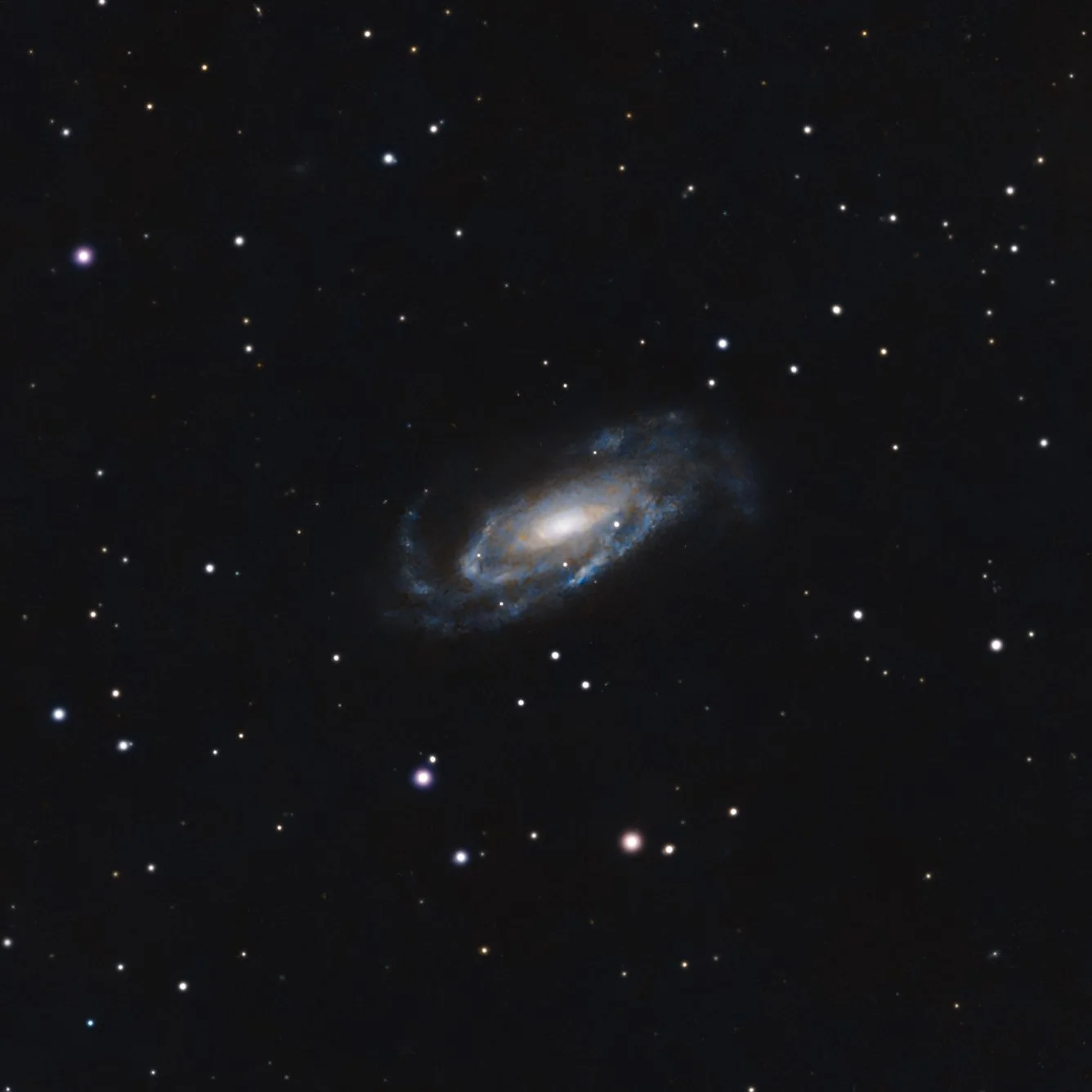 There's a supermassive black hole actively feeding at the centre of NGC5033, which explains why the core burns so bright. The arms don't seem to care — they sprawl outward in loose, asymmetric loops, blue with star formation, slightly chaotic, completely beautiful. Not a tidy galaxy. A characterful one. Dark skies and patience, and it'll show you everything it's got.