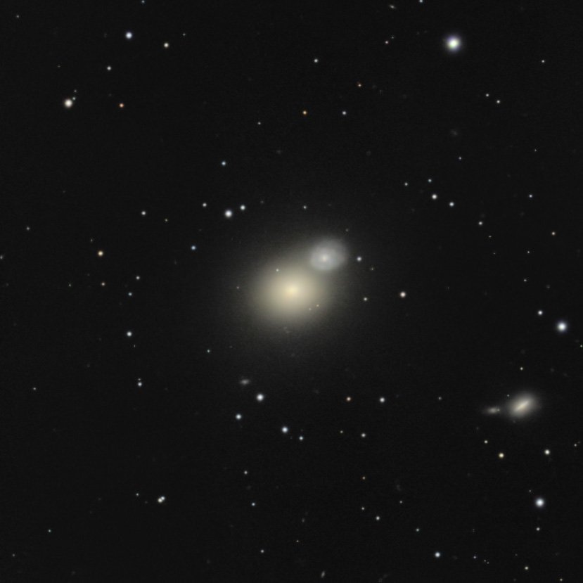 The story here isn't M60 — it's the small spiral NGC4647 pressed right up against it. Two galaxies at different distances that happen to overlap from our line of sight, and the contrast between M60's smooth elliptical glow and NGC4647's faint spiral structure is what makes this frame interesting. Dark skies help bring out the companion. A target that's more than it looks on paper.