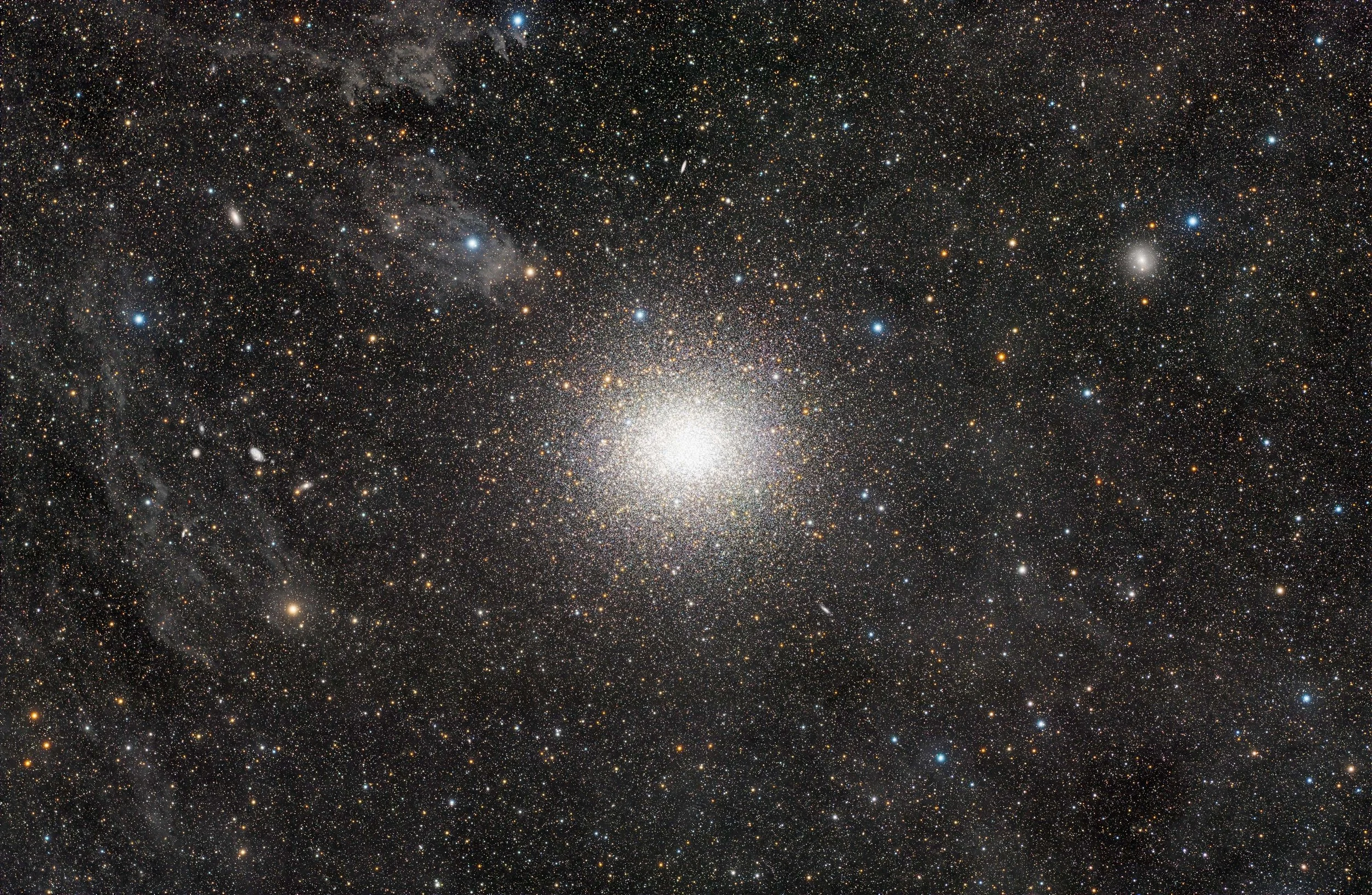 Ten million stars in a ball 17,000 light years away — and it shows. Omega Centauri is so large and so unusual that astronomers think it's the stripped core of a dwarf galaxy the Milky Way consumed long ago. It resolves into individual stars at the edges even on a modest setup, and the colour gradient from core to halo is visible with enough integration. The southern hemisphere's greatest globular, and one of the greatest targets in the sky. Watch the core — it's dense enough to blow out before the outer halo is properly exposed.
