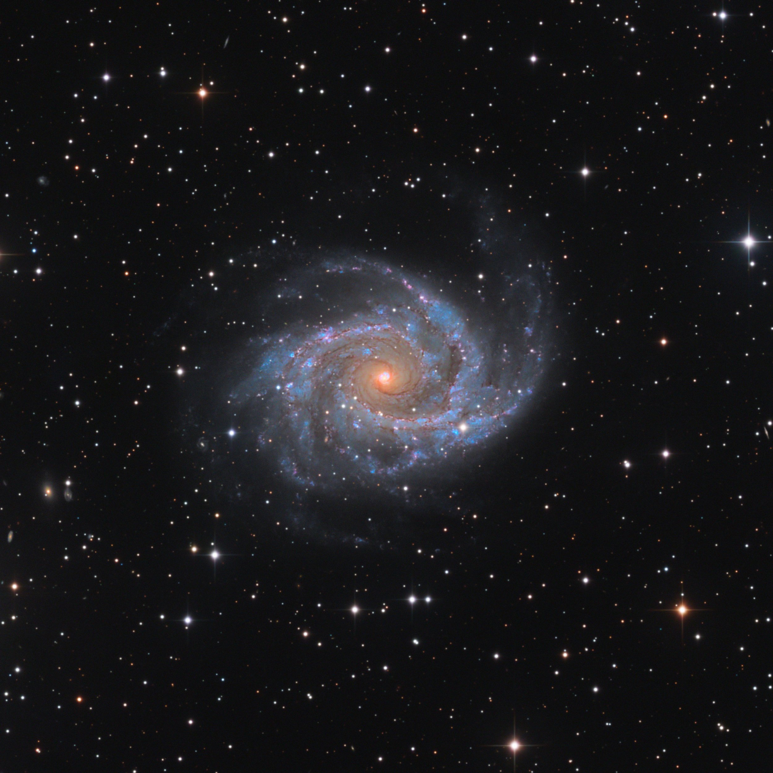 NGC 2997 is a bright, well-defined face-on spiral and a small but rewarding smart telescope target for southern observers. Its strong core and sweeping spiral arms show up clearly with steady stacking, with longer integrations revealing mottled arm structure and subtle dust features. It’s one of those galaxies that really rewards patience, building into a classic spiral appearance over time.