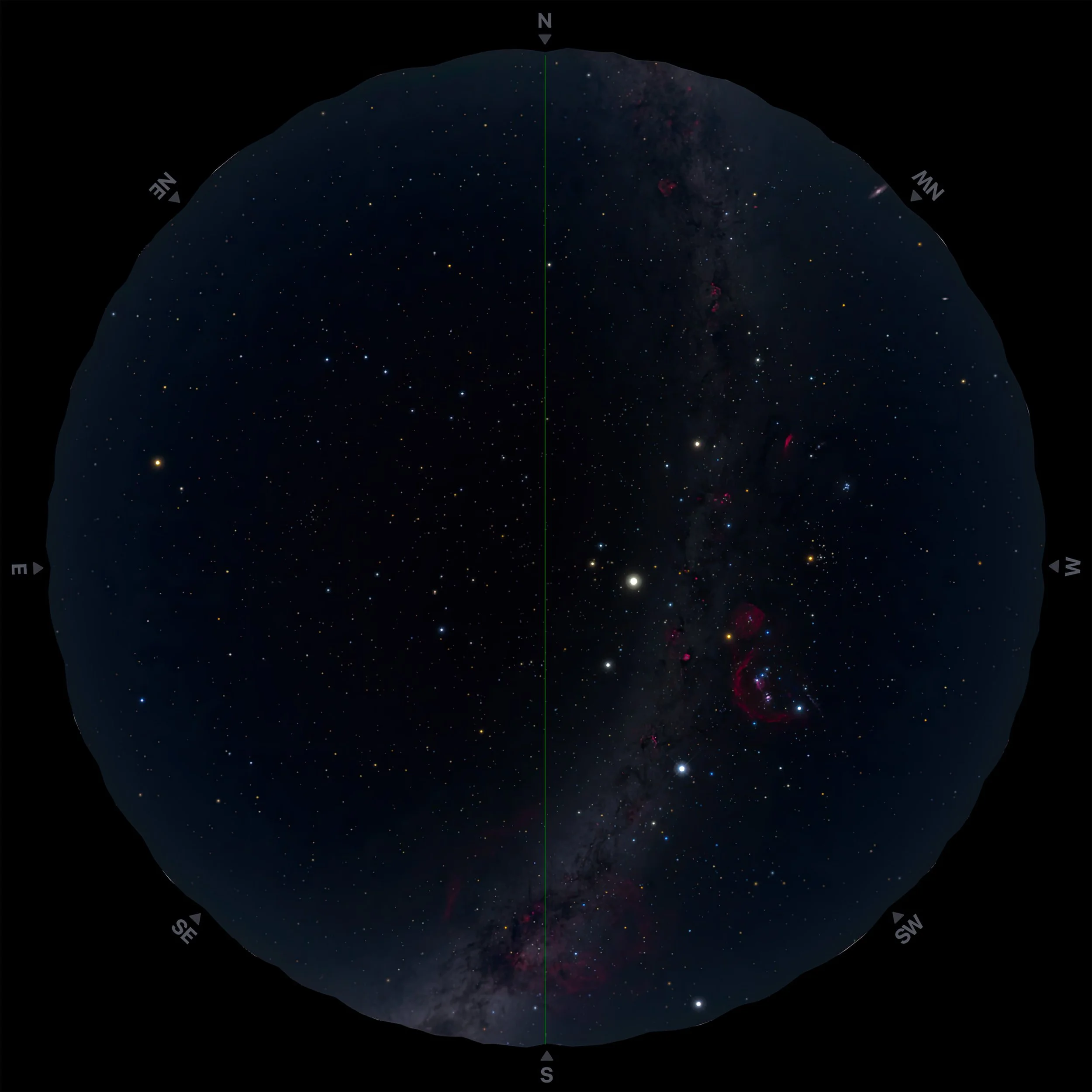 Southern Hemisphere Sky – Midnight at New Moon (at -30° latitude)