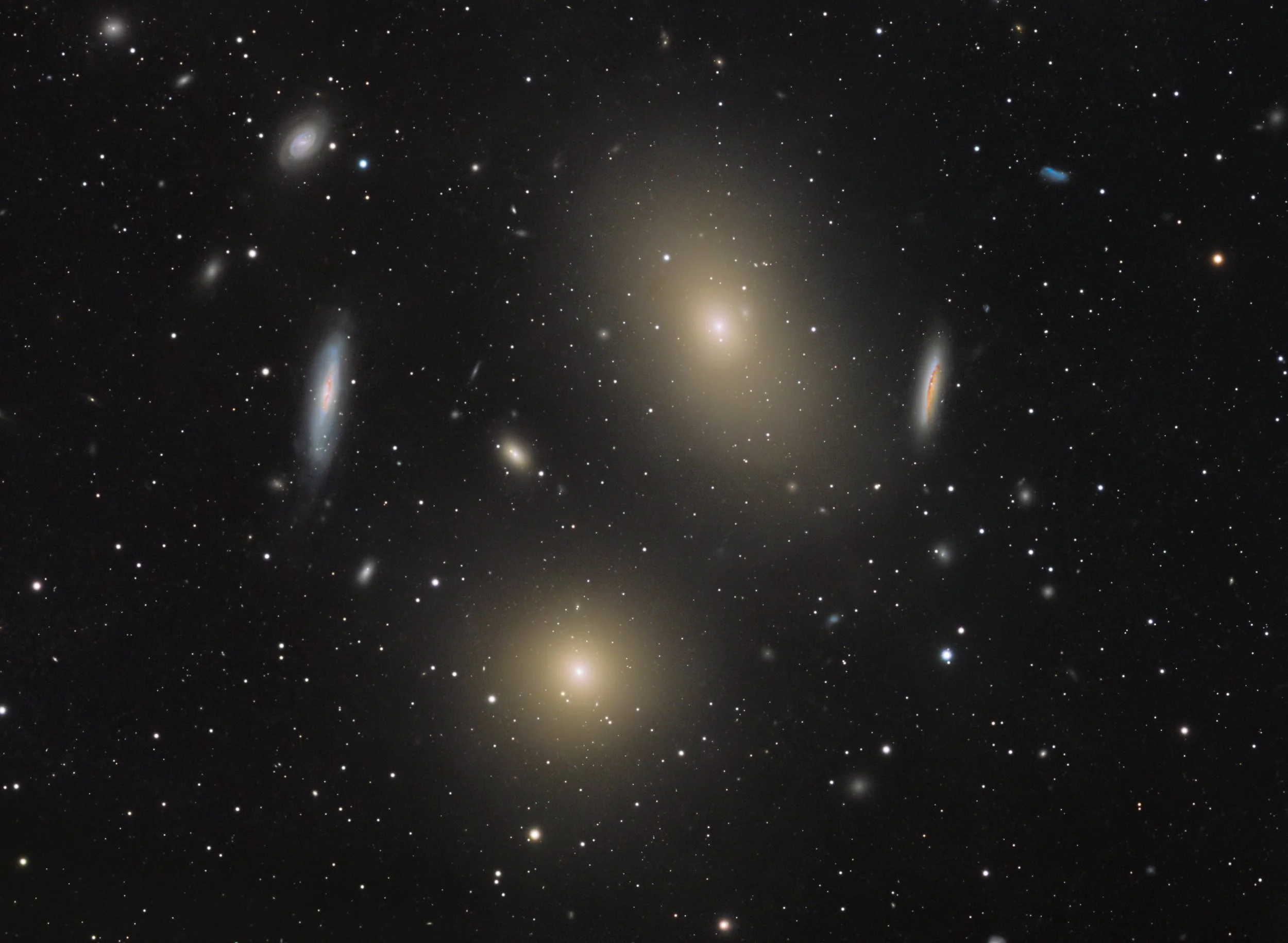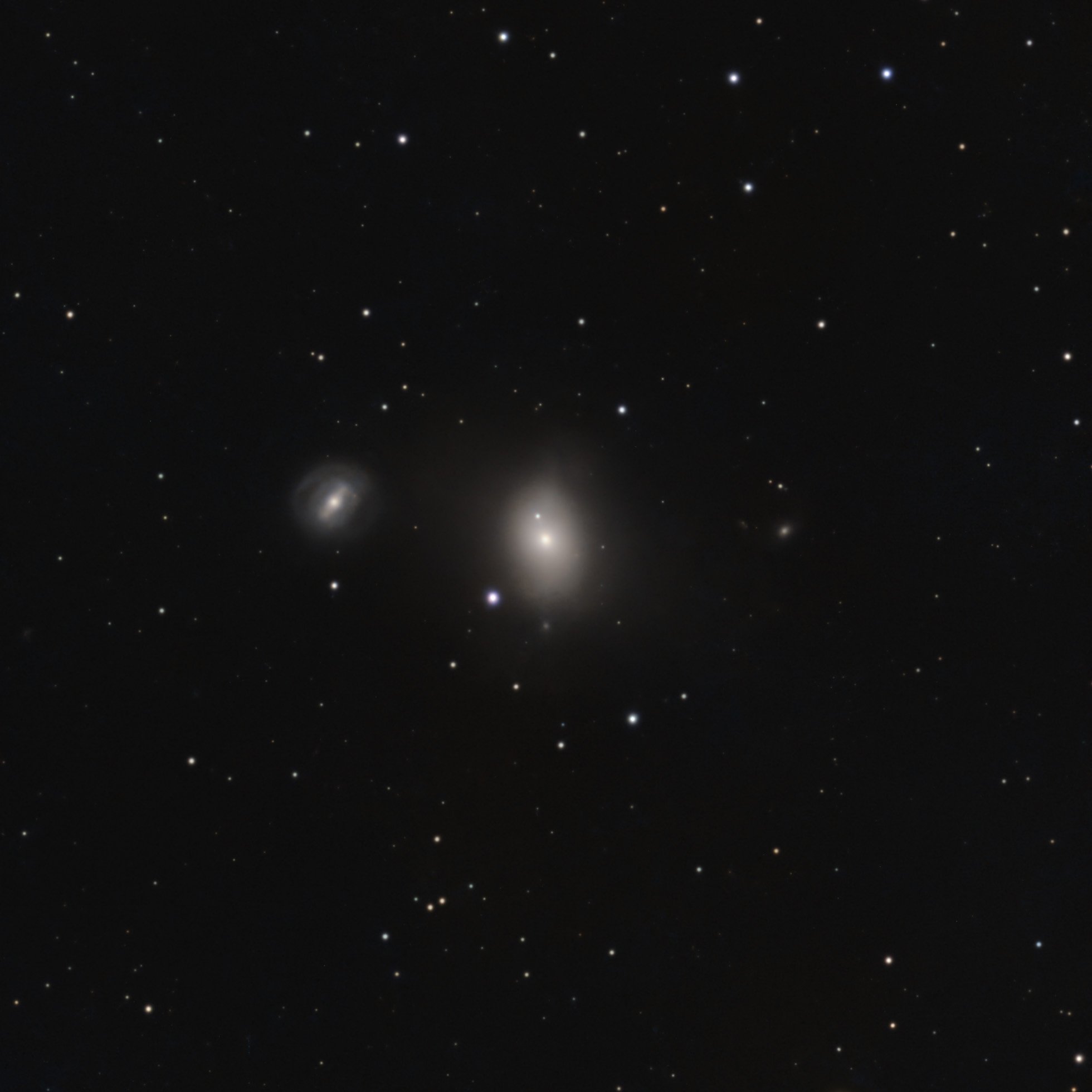M84 (lower center) shown together with the nearby galaxy M86 and surrounding Virgo Cluster galaxies. Captured with a Sky-Watcher Esprit 100 at f/4.12 and an ASI2600MM Pro camera using LRGB filters.