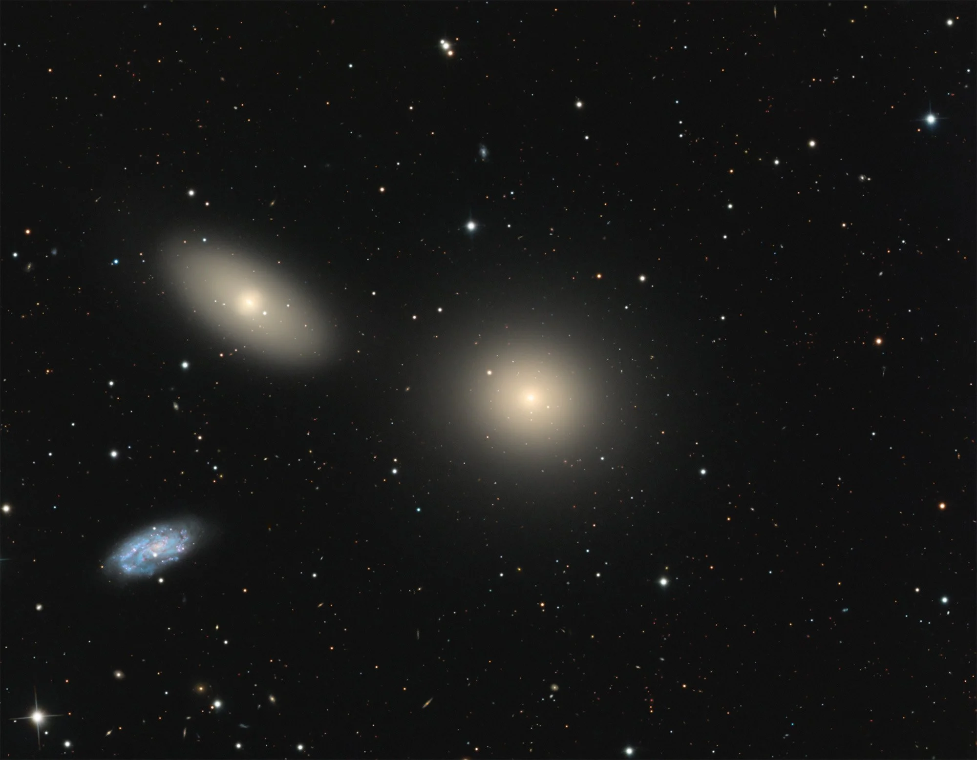 M105 (to the right) with galaxies NGC 3384 and NGC 3389, captured using a ZWO SeeStar S50 smart telescope by Cosmic Captures