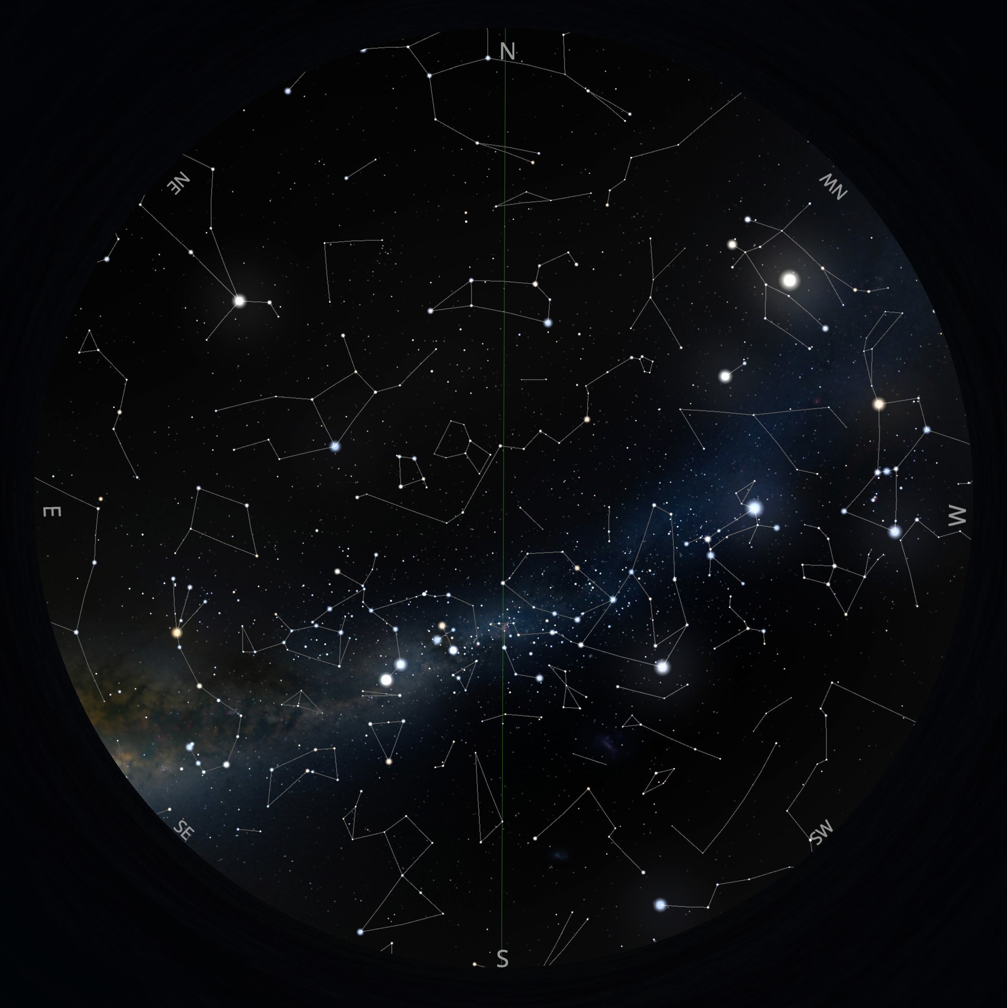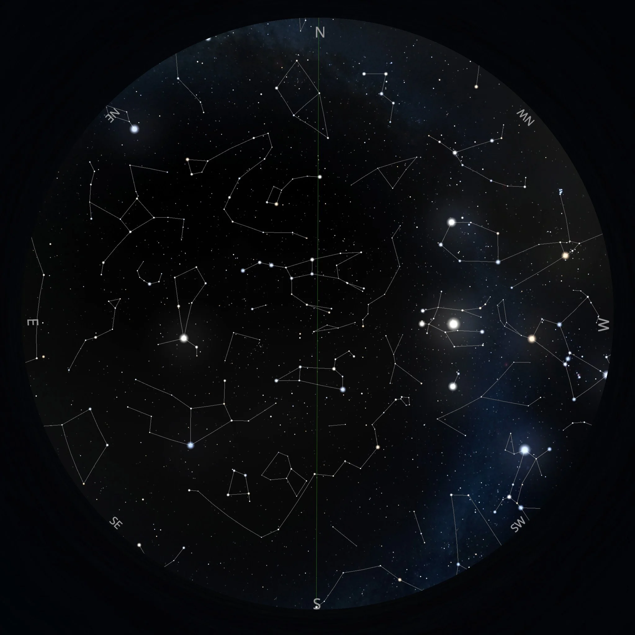In the southern hemisphere, the Milky Way still stretches across the sky, with Carina and Crux offering rich star fields and nebulae. At the same time, galaxy-rich regions around Hydra and Virgo rise higher in the east.
