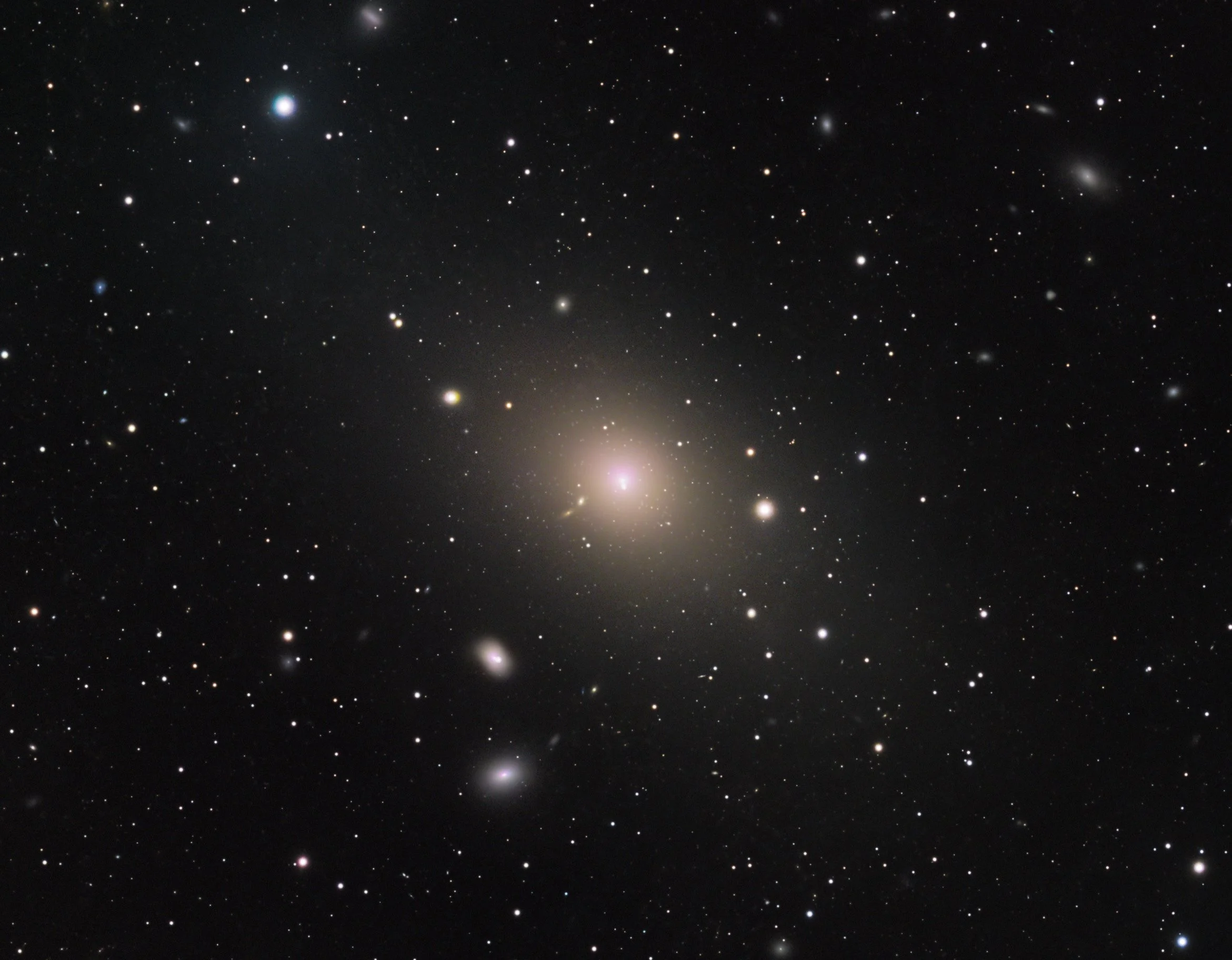 M49 is one of the brightest galaxies in the Virgo Cluster and appears as a large, softly glowing elliptical halo with a bright central core. Unlike spiral galaxies, it shows a smooth and uniform light distribution without obvious structure, making it a good example of a classic elliptical galaxy.