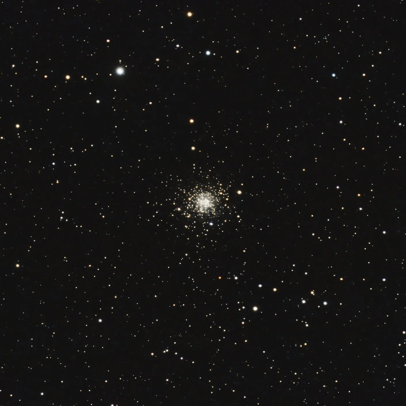 One of the looser globulars in the summer sky — the stars spread outward more freely than in the densely packed classics, which means individual members resolve more easily across the full field. The core stays manageable rather than blowing out, and the surrounding star field adds real context to the frame. A bright suburban sky won't stop you — this resolves well even under significant light pollution.